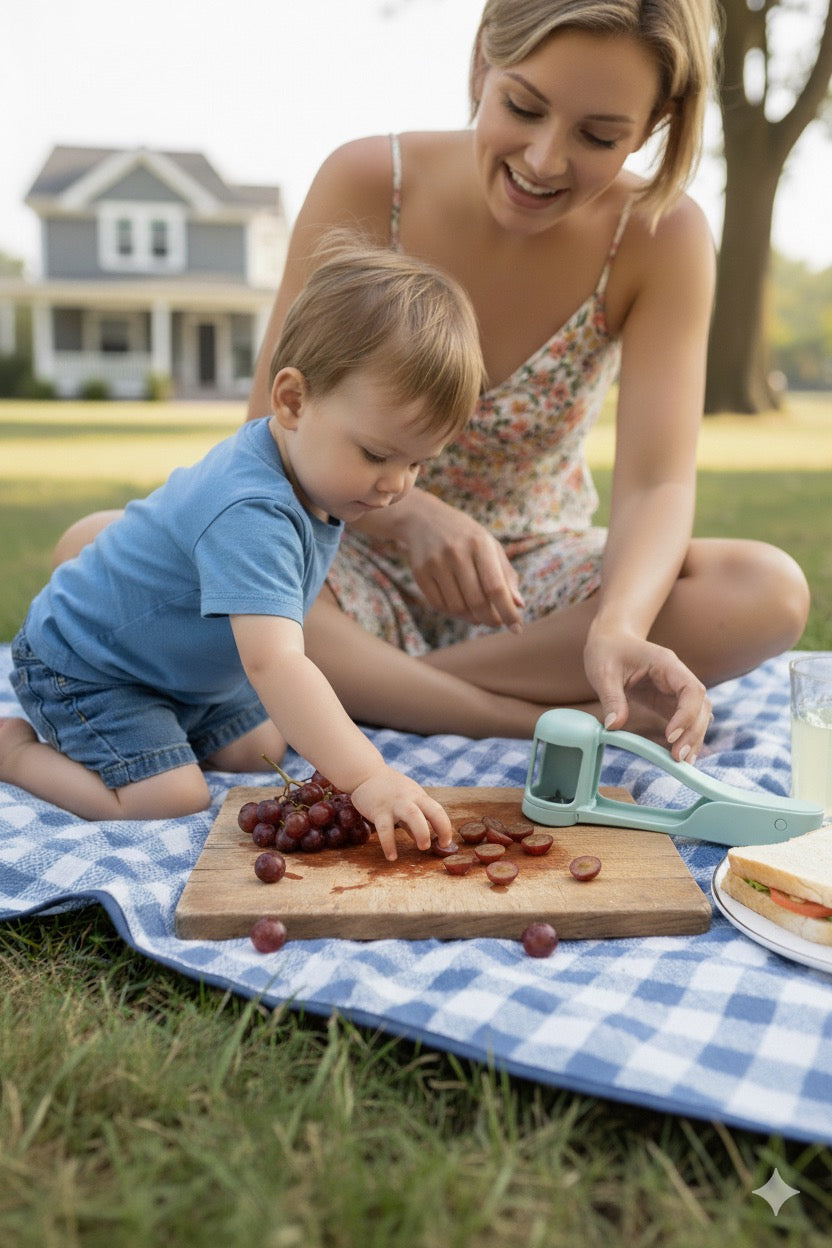 This grape cutter is a parent-friendly kitchen tool designed to make snack prep fast, safe, and stress-free. With one simple press, it quarters grapes, cherry tomatoes, and other small fruits—helping reduce choking hazards for toddlers. Its ergonomic design, stainless steel blades, and dishwasher-safe build make it perfect for everyday use in busy family kitchens